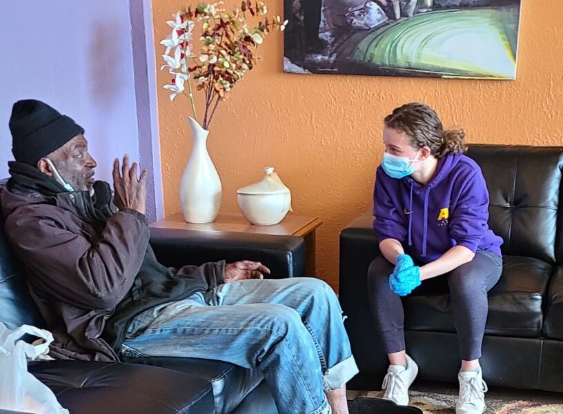 When serving our friends outdoors we are always giving out fresh socks (freshies) as they are called. The reason is that proper foot care is important when you are living outdoors or you may be newly housed and have no means of transportation other than walking. On average our friends walk about 30-50 miles each week getting themselves around town. When engaging our friends outdoors with Dr. Lehmann a common request is looking at someone’s feet because of discomfort and pain. Making House Calls at the street level is a vital part of bringing dignity to our friends that are suffering. Doc initiated an opportunity using med students that come out with us, a so-called foot clinic of sorts. When engaging someone on the streets who present with feet issues we would set up a time to meet them at IMFK to do a foot washing and any treatment that may be necessary. Well, this afternoon we set up an appointment with Joe. Joe worked on the Hire Ground van earlier that day and when his day was over Halie was able to wash Joe’s feet and then proceeded to cut his nails and treat a callus on the bottom of his foot. We will do whatever it takes to show someone dignity and value in the middle of their suffering. Thank you Doc for your continued compassionate care to our friends and thank you for training the next generation of physicians on what it really means to serve the less fortunate! Joe was so appreciative and thankful for the care he received, You Are Not Invisible our friend!