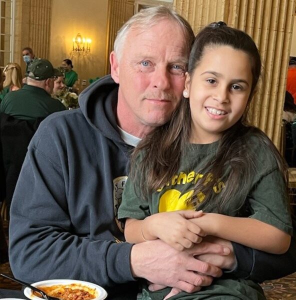 We met Kevin back in June of 2013. Kevin was addicted and homeless living on the streets of Syracuse. We met Kevin with a lunch when he was panhandling on the offramp of 690 East at the Teall Ave exit (picture 1). As the weeks turned into months we quickly released that Kevin was a man with a huge soft heart. He shared with us that he had three daughters and a beautiful granddaughter. We find out the story behind the cardboard sign, the story of having a full-time job, living in his own place with his children and their mother. That all changed the day that he started to use crack cocaine. The addiction took over and Kevin started to slowly slide down the slippery sloop of addiction. This story is a story we hear over and over again from many of our friends living outdoors. Kevin didn’t wake up one morning and decide he was going to through his life away, it’s the little choices that are made with bad decisions that lead to a life of chaos. In late October of 2013 Kevin’s brother Mark who was homeless himself dies in an abandoned house due to a fire. That event was a major catalyst for Kevin for change in his life. The following March of 2014 Kevin admits himself into Salvation Army long-term rehab. John receives a call from Kevin on this decision and asks if John would become his mentor while working the program. Upon graduating from the program IMFK was able to assist Kevin into his own apartment in October of 2014 and to acquire his first job. Kevin started volunteering with IMFK (picture 2) and became John’s, right-hand man. With assistance from a friend of Johns from church, Kevin was given his first vehicle to be able to get back and forth from work, what a blessing. After 5 years of sobriety and being reunited with his girls and granddaughter Kevin was offered a position as the Hire Ground Van Supervisor. Kevin accepted the position and has been a wonderful addition to our team. (picture 3) This passed St. Patricks Day John was honored as the Gael of the parade and Kevin was able to drive the Hire Ground Van in the Parade with his granddaughter. There was an event after the parade and we were able to get a great picture of Kevin and Jalah after lunch. Looking at their faces in this picture brings joy to our hearts. It all started with a lunch and unconditional love. Kevin did the footwork we provide Hope and support for him to take the steps into his bright future! Love Never Fails and with your continued support Sous Chefs, we will continue to reach out to those who feel Invisible!