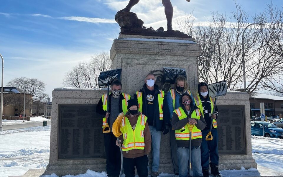 Our Hire Ground Team was out shoveling sidewalks throughout the City of Syracuse last week. Kevin brought the Team to one location across from the old Central Tech High School to shovel around the park. To be out in the cold Panhandling to survive is one thing but to WORK to earn your way is another. Its all about a Hand Up not a Hand Out. The Team at the end of the day felt so accomplished and they came back to IMFK at the end of the day feeling like the accomplished and completed a mission. To be able to work for 5 hours and escape the noise that harasses our friends minds is irreplaceable. Instead of escaping the noise through drugs they escape by joining together as a unit working and talking about life. Thank you Paulette IMFK (Care Manager) and Kevin IMFK (Van Driver) for showing our friends they are not Invisible.
