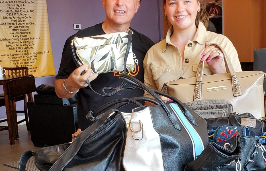 “Today I made my first donation to In My Fathers Kitchen Fundraiser !! I donated 10 purses full of essentials along with an extra box full of hundreds of feminine hygiene products, antibacterial wipes, toothbrushes, and tissues. John Tumino does direct outreach on the streets of Syracuse, so these handbags will be fulfilling their higher purpose amongst women who are currently living outdoors”.