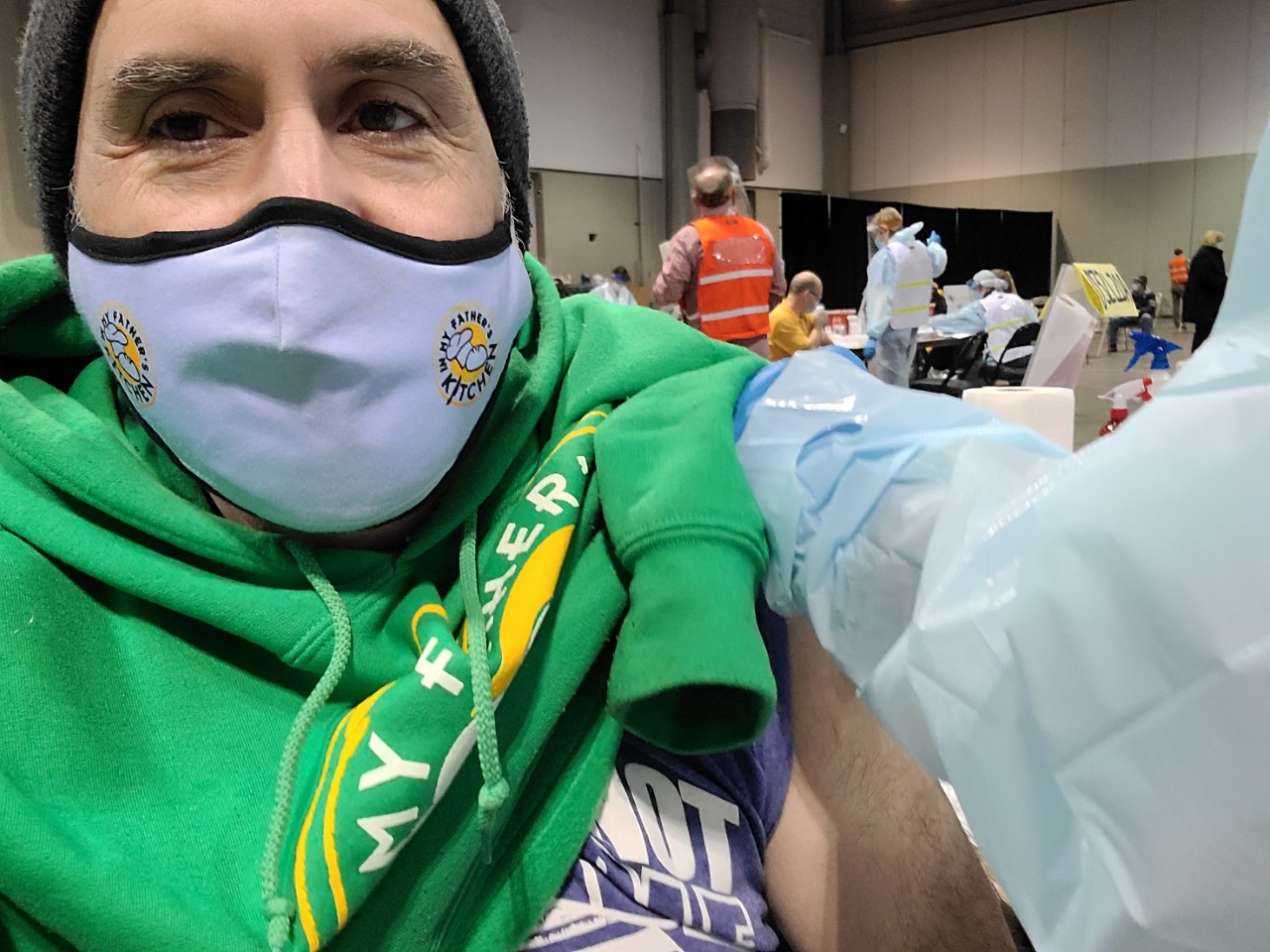 Kevin and I were able to sign up to receive the first round of the Moderna Covid-19 Vaccine. We were a little anxious today about receiving the Vaccine due to the newness off this new treatment. The Process was was very easy, first sign on to website and apply for your dose. If there was availability they sent you an appointment time and were to go. We arrived at the Oncenter and stood in line for our 12:40 appointment. We then proceeded through three stations and arrived at our fourth were we were both administered the Vaccine. I looked down at the time and it was 12:58, I thought to myself that this was a quick process just 24 minutes. We were asked to sit and wait for 15 minutes after receiving the Vaccine to see if we would experience any side affects. We walked out at 1:15 and went back out to do Street Outreach. The only symptom I had for the remainder of the day was a very sore left arm form were the shot was given. Our next appointment for round two is in three weeks. I am very excited that we were able to receive the vaccine not just for our own peace of mind but also knowing that we are one step closer to bringing an end to this Pandemic. Now its time for us to figure out how to vaccinate all those living out on the streets, its all about logistics. Living in this great community gives me confidence that a way will be made for our homeless friends as well. God Bless everyone we are in this together.
