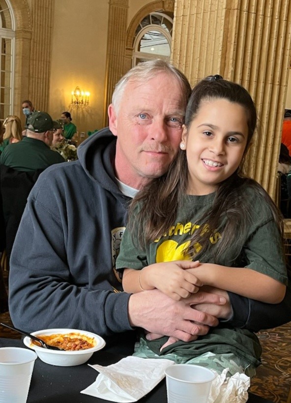 We met Kevin back in June of 2013. Kevin was addicted and homeless living on the streets of Syracuse. We met Kevin with a lunch when he was panhandling on the offramp of 690 East at the Teall Ave exit (picture 1). As the weeks turned into months we quickly released that Kevin was a man with a huge soft heart. He shared with us that he had three daughters and a beautiful granddaughter. We find out the story behind the cardboard sign, the story of having a full-time job, living in his own place with his children and their mother. That all changed the day that he started to use crack cocaine. The addiction took over and Kevin started to slowly slide down the slippery sloop of addiction. This story is a story we hear over and over again from many of our friends living outdoors. Kevin didn’t wake up one morning and decide he was going to through his life away, it’s the little choices that are made with bad decisions that lead to a life of chaos. In late October of 2013 Kevin’s brother Mark who was homeless himself dies in an abandoned house due to a fire. That event was a major catalyst for Kevin for change in his life. The following March of 2014 Kevin admits himself into Salvation Army long-term rehab. John receives a call from Kevin on this decision and asks if John would become his mentor while working the program. Upon graduating from the program IMFK was able to assist Kevin into his own apartment in October of 2014 and to acquire his first job. Kevin started volunteering with IMFK (picture 2) and became John’s, right-hand man. With assistance from a friend of Johns from church, Kevin was given his first vehicle to be able to get back and forth from work, what a blessing. After 5 years of sobriety and being reunited with his girls and granddaughter Kevin was offered a position as the Hire Ground Van Supervisor. Kevin accepted the position and has been a wonderful addition to our team. (picture 3) This passed St. Patricks Day John was honored as the Gael of the parade and Kevin was able to drive the Hire Ground Van in the Parade with his granddaughter. There was an event after the parade and we were able to get a great picture of Kevin and Jalah after lunch. Looking at their faces in this picture brings joy to our hearts. It all started with a lunch and unconditional love. Kevin did the footwork we provide Hope and support for him to take the steps into his bright future! Love Never Fails and with your continued support Sous Chefs, we will continue to reach out to those who feel Invisible!