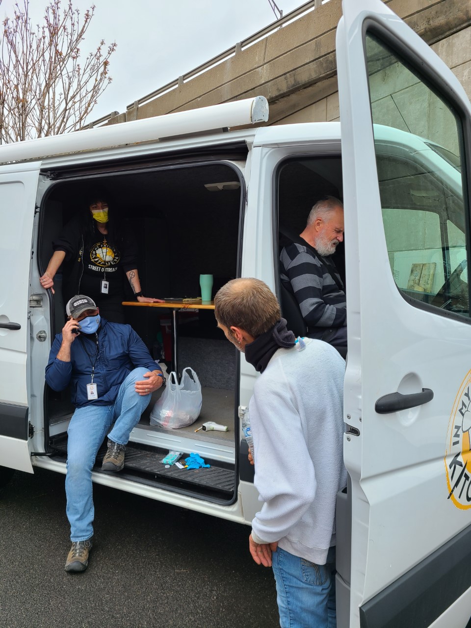 Today we were able to meet a new friend who is experiencing homelessness. We received multiple calls from a local business who was concerned for the safety of  a very friendly homeless individual residing behind their establishment. Our team was able to engage and introduce ourselves  and ask about his story. As we were talking I noticed an abscess on our friends hand and asked if Doctor Lehmann could take a look at it. He allowed Doc to examine him and proceeded to inform us that heroine is his drug of choice and that he wanted to be free from it. Doc asked if he would be interested in taking Suboxone as well as us making an appointment with Doctor Johnson and Doctor Aslam from Upstate Rehabilitation. Our friend was all in and so appreciative. Tomorrow he will meet with JD and Kat (IMFK Care Managers) to start housing intake paper work and JD will be transporting him up to the clinic to meet the medical team for treatment. JD has committed to being his sober support while he moves through this new journey of life. I love first contacts with new friends, you never know what your going to experience. Todays encounter was beautiful and we are looking forward to our friends transformation off of heroine. Thank you everyone for your continued support  of our Mission